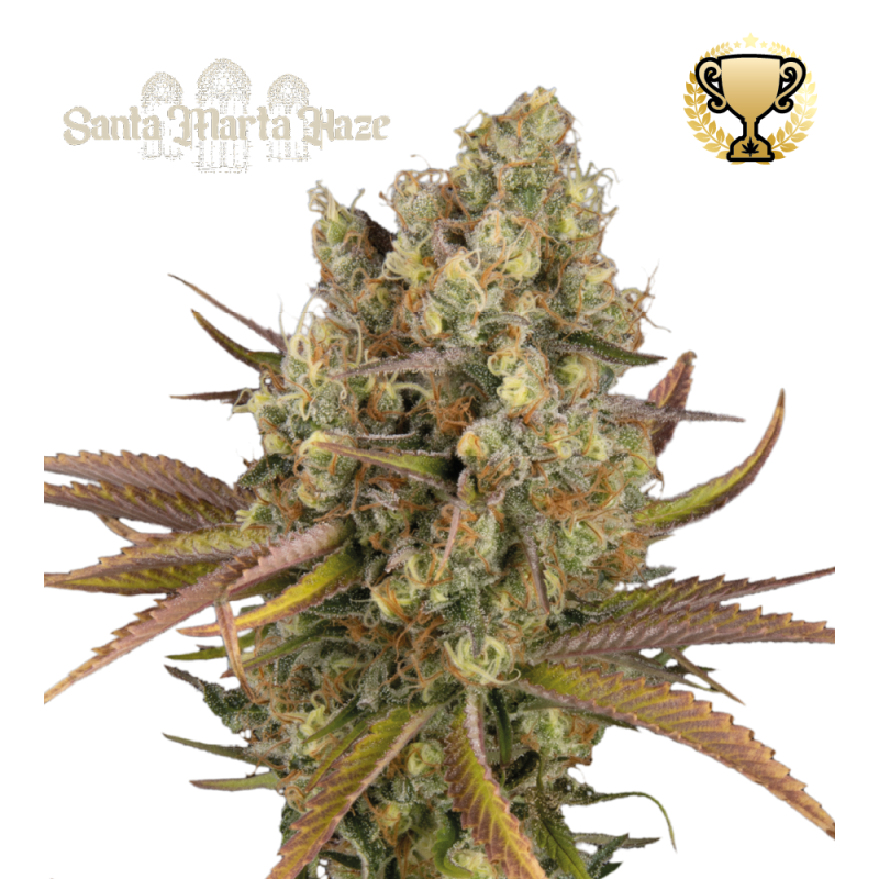 Santa Marta Haze — автоцветущий феминизированный сорт с высоким уровнем ТГК и ярко выраженной сативной природой. Генетика основана на скрещивании Santa Marta Haze и Amnesia Auto, что формирует устойчивый характер и узнаваемый профиль. Активнее всего проявляется днём, когда требуется бодрость и ясность восприятия. Сорт описан как несложный в выращивании, хотя может откликаться на условия среды.