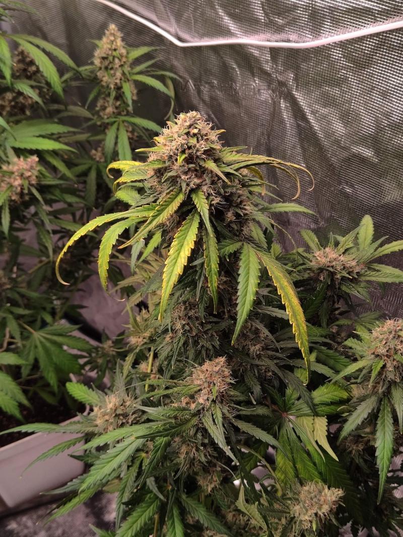 Растения невысокие, с плотной структурой и компактными шишками красноватых оттенков. Примерно у 75% особей развиваются яркие пурпурные цветы, что делает сорт визуально привлекательным. Цикл выращивания занимает около 7–8 недель с момента появления семядолей. Урожайность стабильная, на уровне средней, как в условиях помещения, так и на открытом воздухе. Сорт устойчив и не требует сложного ухода, хорошо чувствует себя при стандартных условиях.